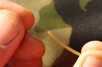 Wenn Sie den Rig tube in einen Rig Rubber einfädeln, sollten Sie den tube spitz zuschneiden und zudem beide Teile vorher mit Spucke anfeuchten. Niemals tube, Clip und Rig Rubber mit Kleber verbinden. Das würde das tube-Material brüchig machen. Und ein abschließender Rat: Wenn Sie den Rig tube nicht mehr weiter benutzen wollen, werfen Sie ihn nicht weg. In kleine Stücke zerschnitten leistet er als Boiliestopper noch wertvolle Dienste.